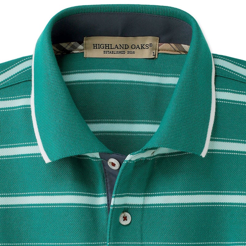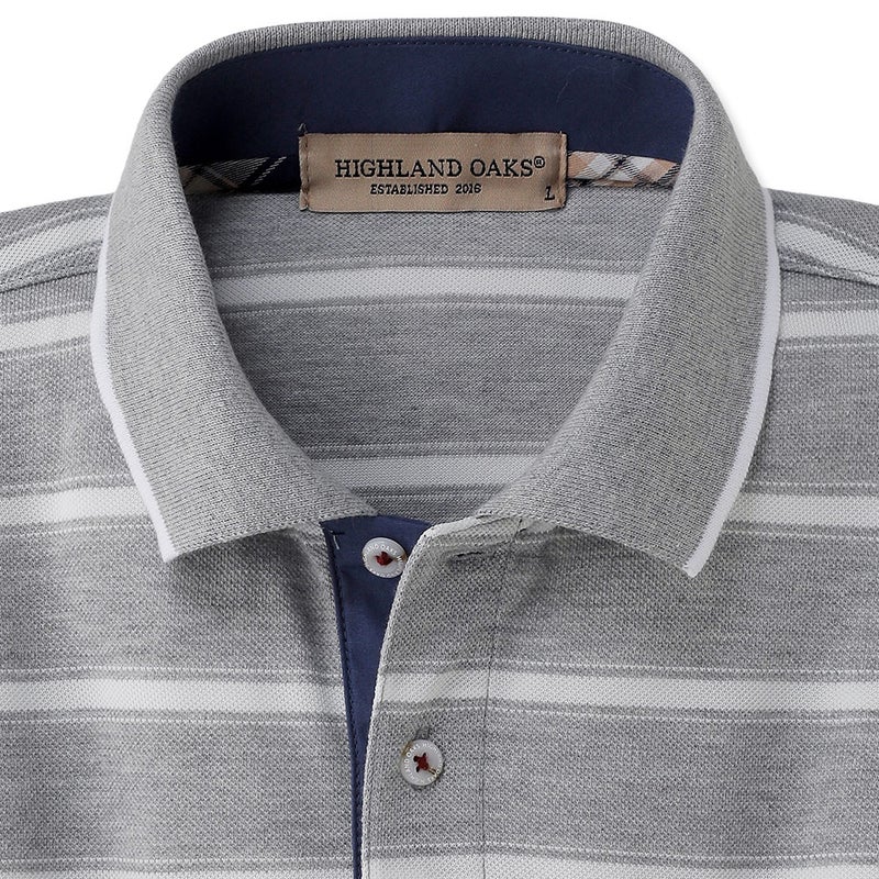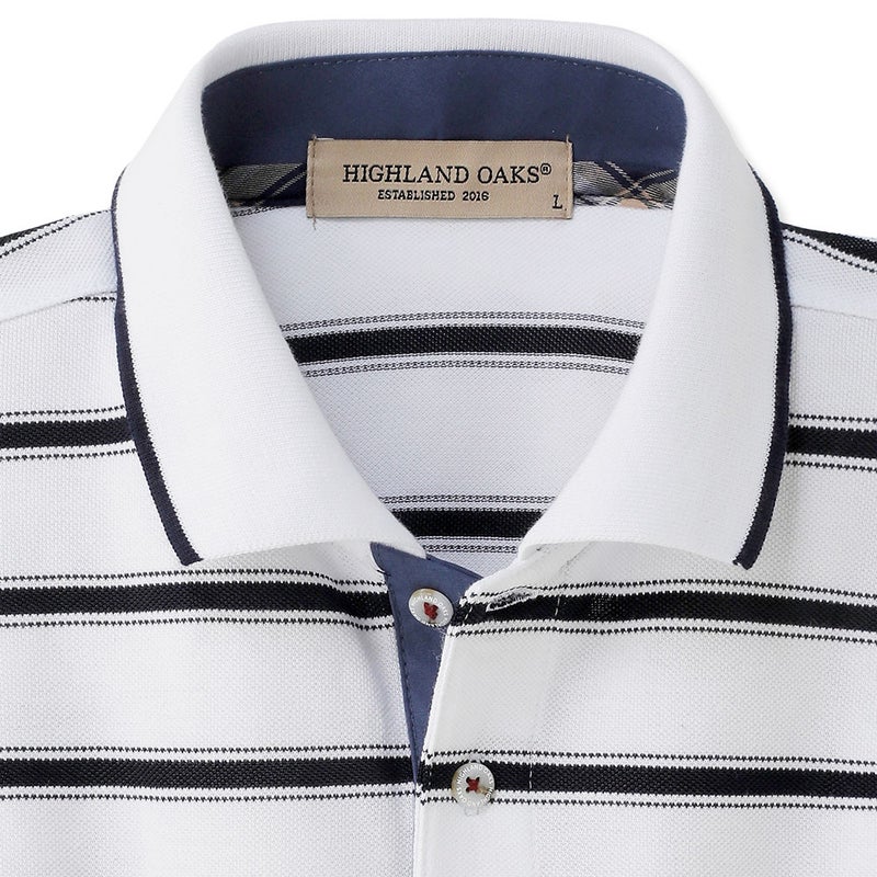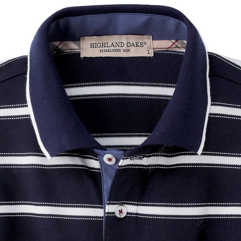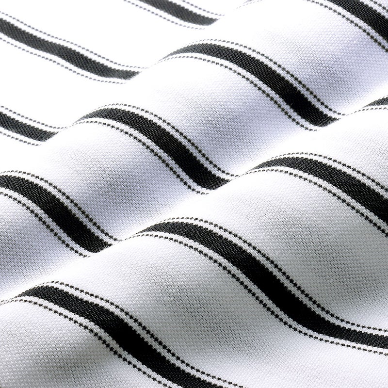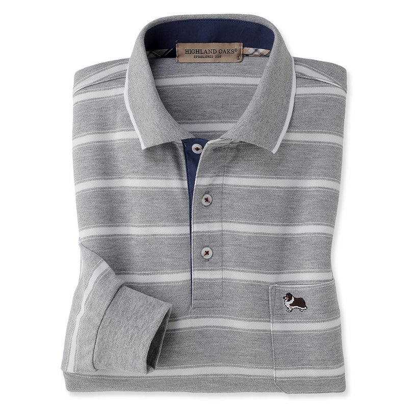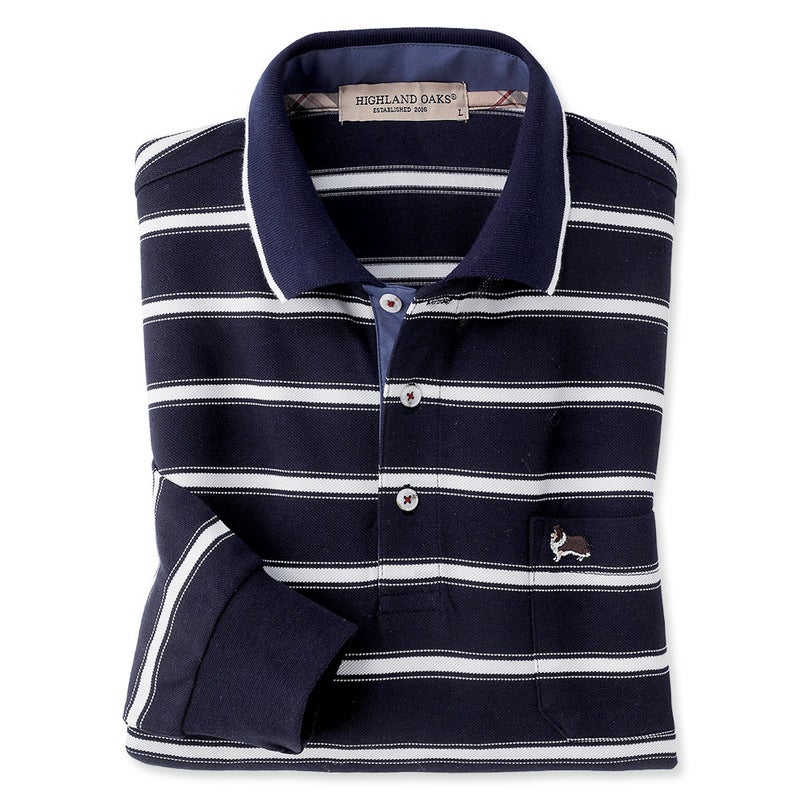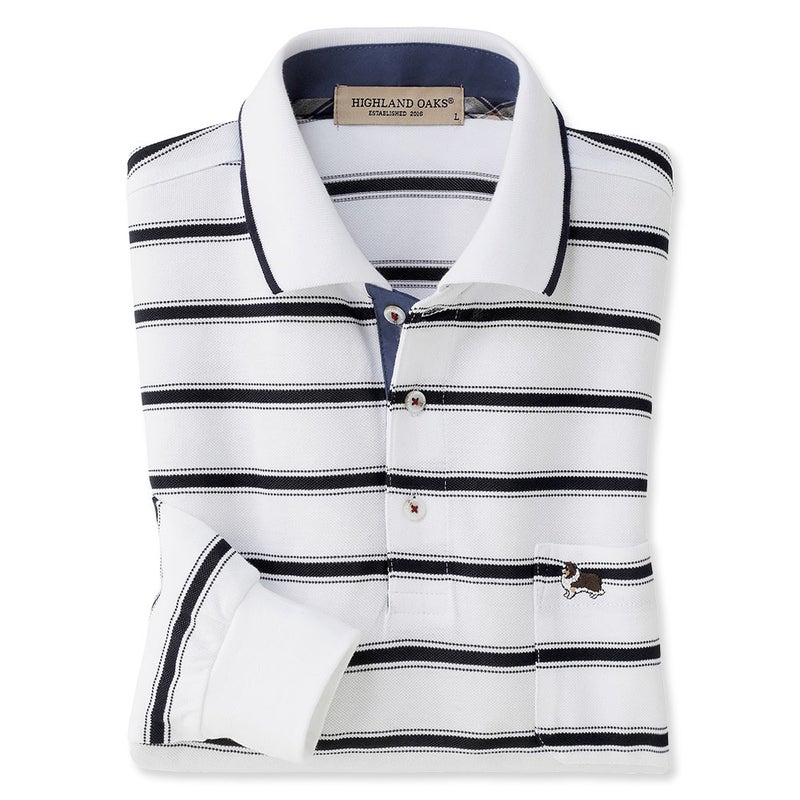 カジュアルさと上品さを兼ね備えた、鹿の子ボーダーの長袖ポロシャツ。