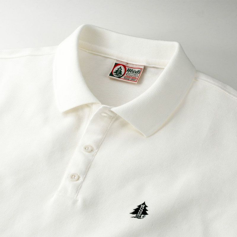 アウトドアブランドWOODSのカノコ半袖ポロシャツ。