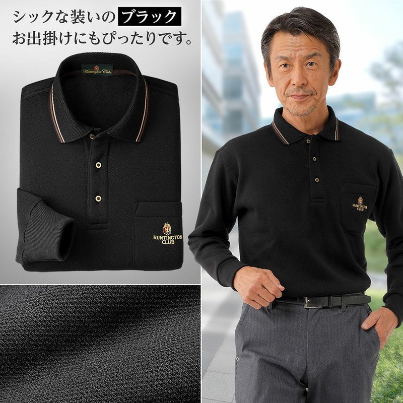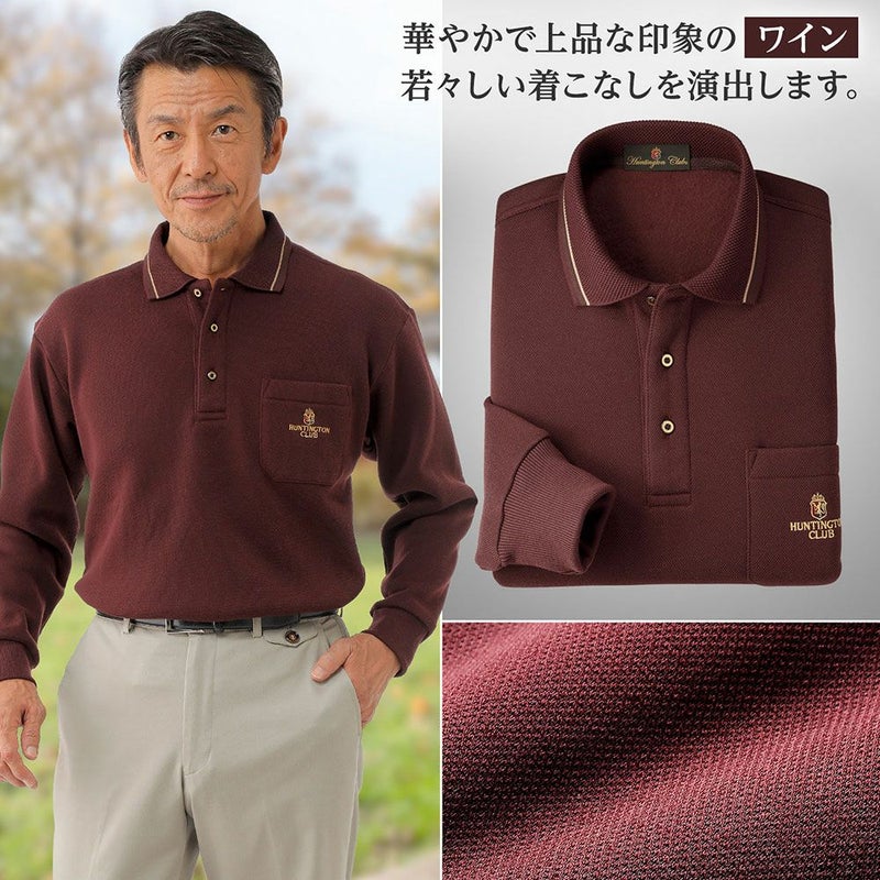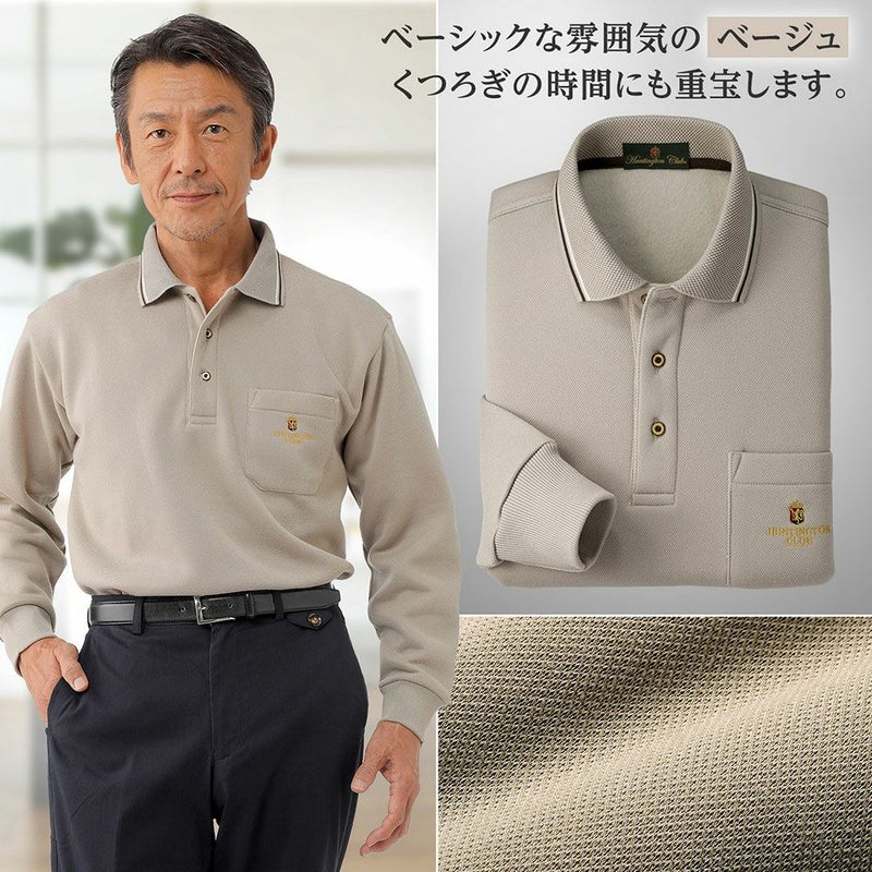 裏起毛仕様であたたかく、肌触りの良い鹿の子素材を使用した長袖ポロシャツ。