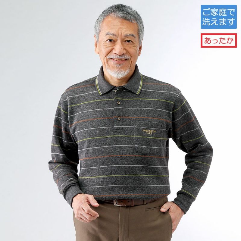 メンズ/裏起毛であたたかい長袖ボーダーポロシャツ
