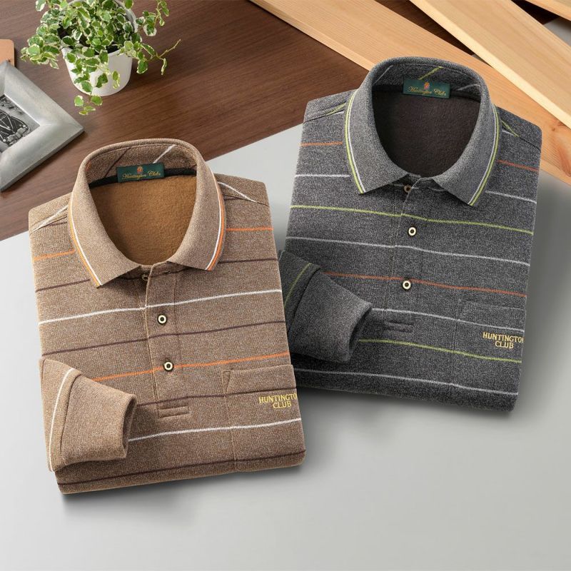 3. メンズ/裏起毛であたたかい長袖ボーダーポロシャツ