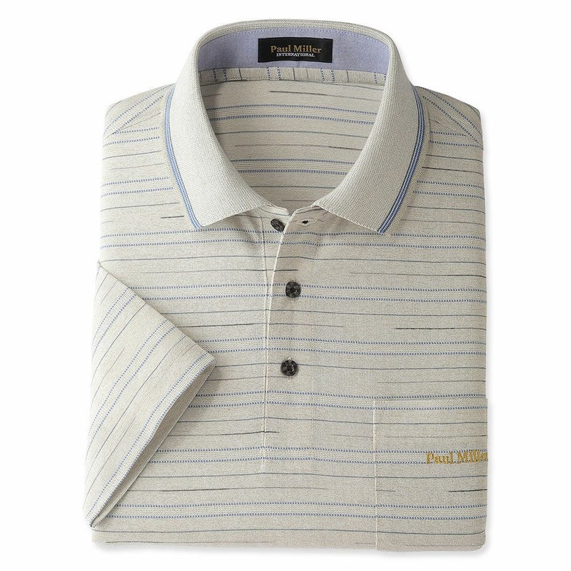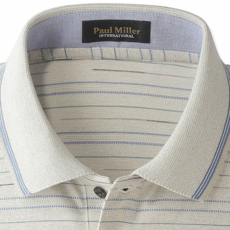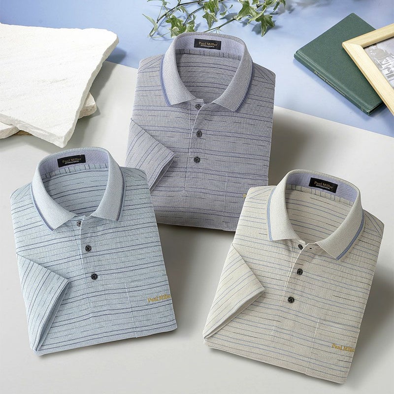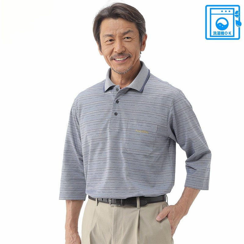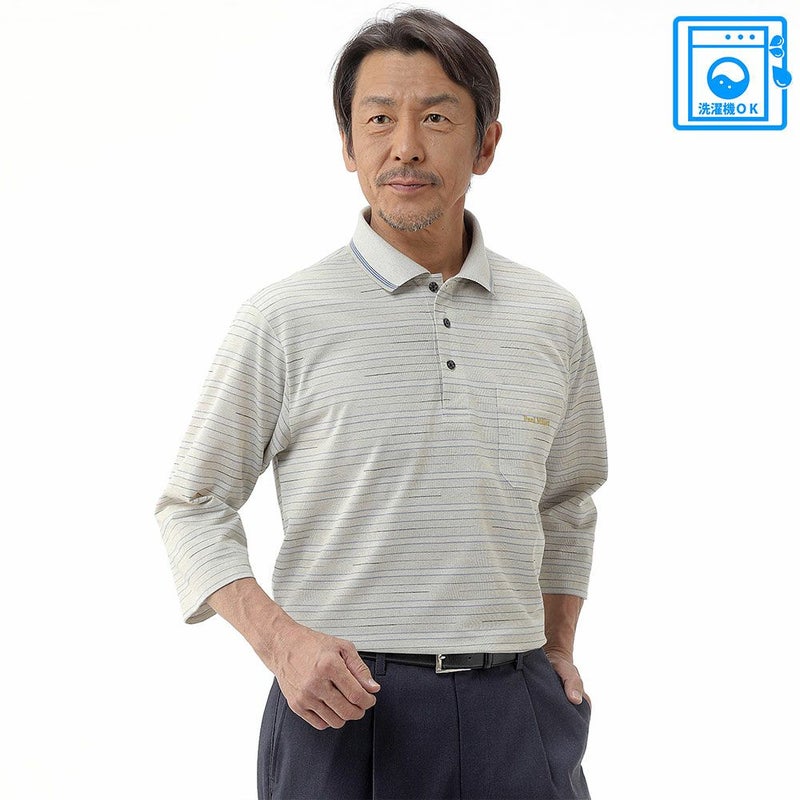 3. メンズ/先染めジャカードボーダー7分袖ポロシャツ