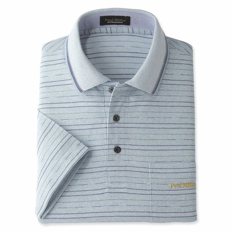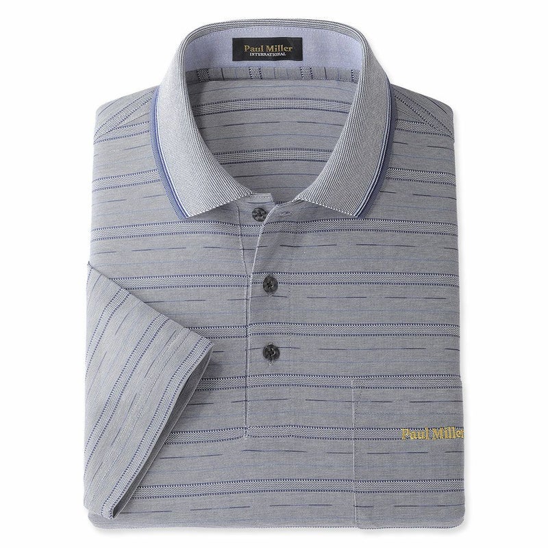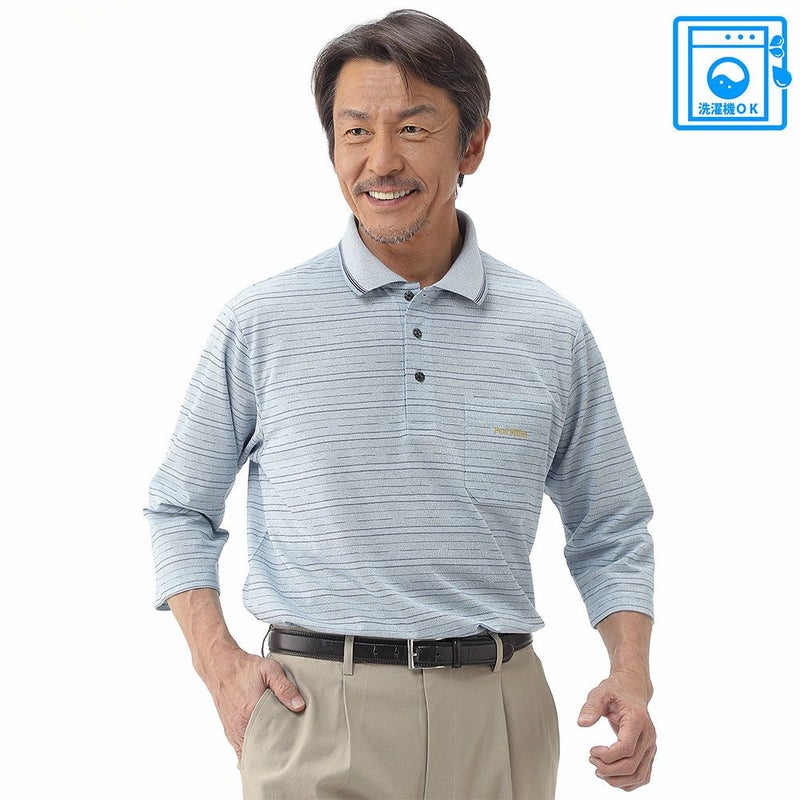 メンズ/先染めジャカードボーダー7分袖ポロシャツ
