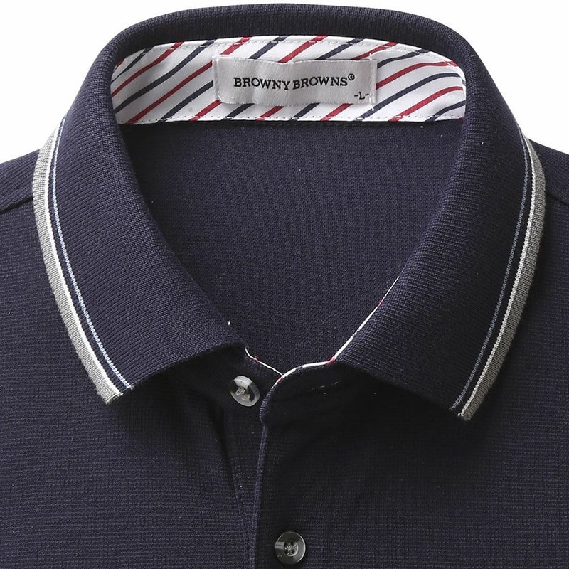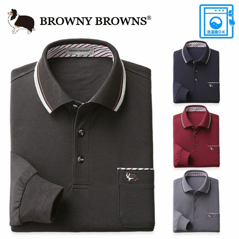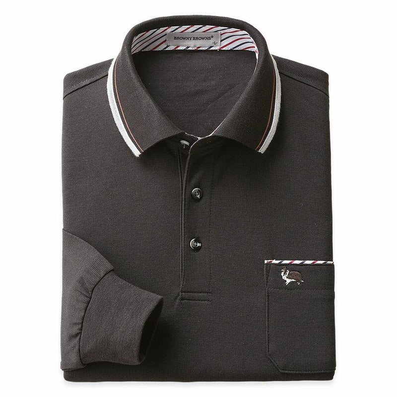 4. メンズ/無地鹿の子長袖ポロシャツ