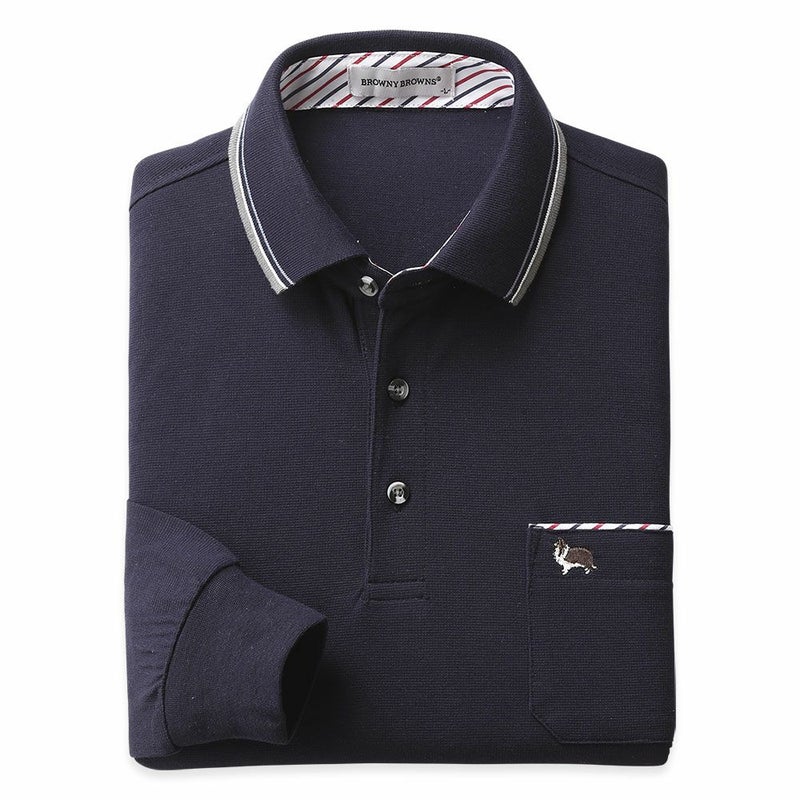 3. メンズ/無地鹿の子長袖ポロシャツ