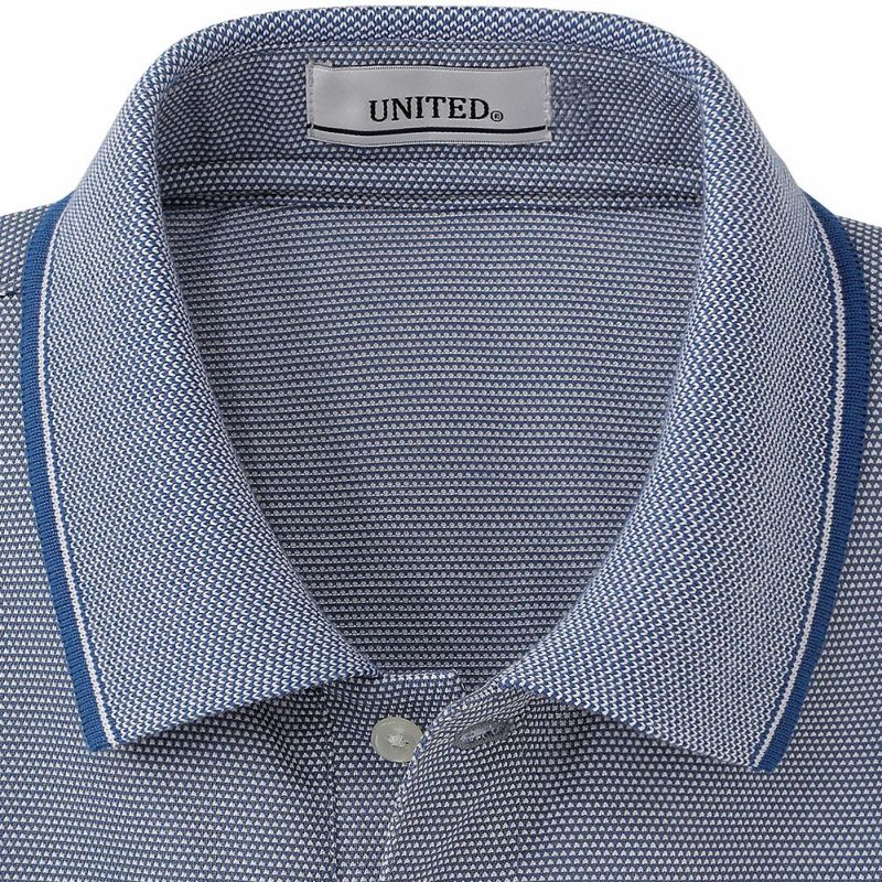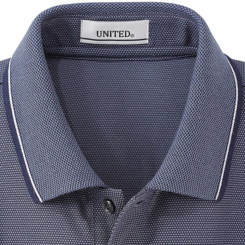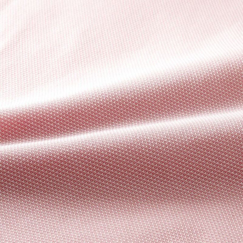 無地なのに表情感のあるピラミッド鹿の子素材を使用。衿のライン配色が爽やかなアクセントです。