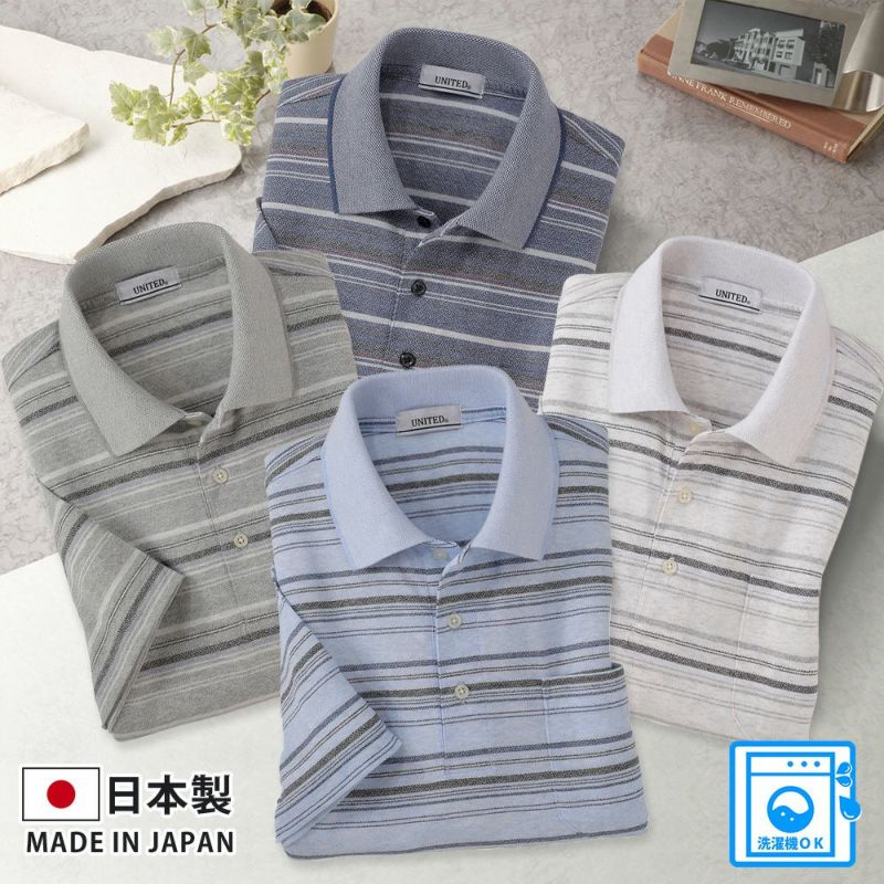 3. 日本製/メンズ/梨地ボーダー半袖ポロシャツ