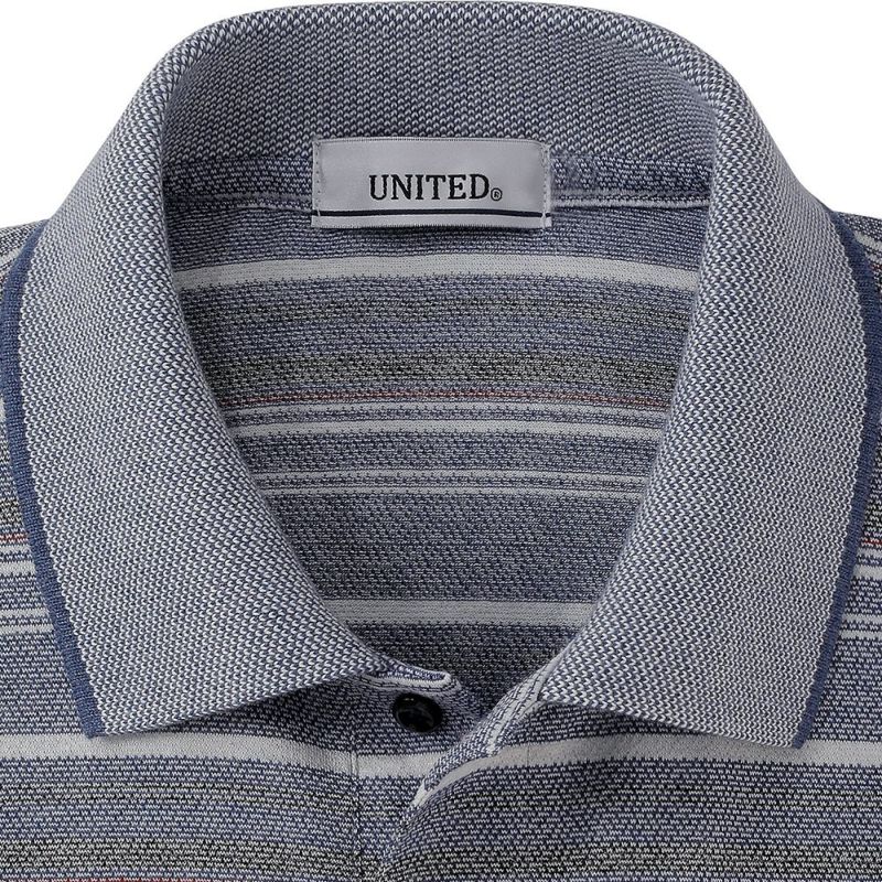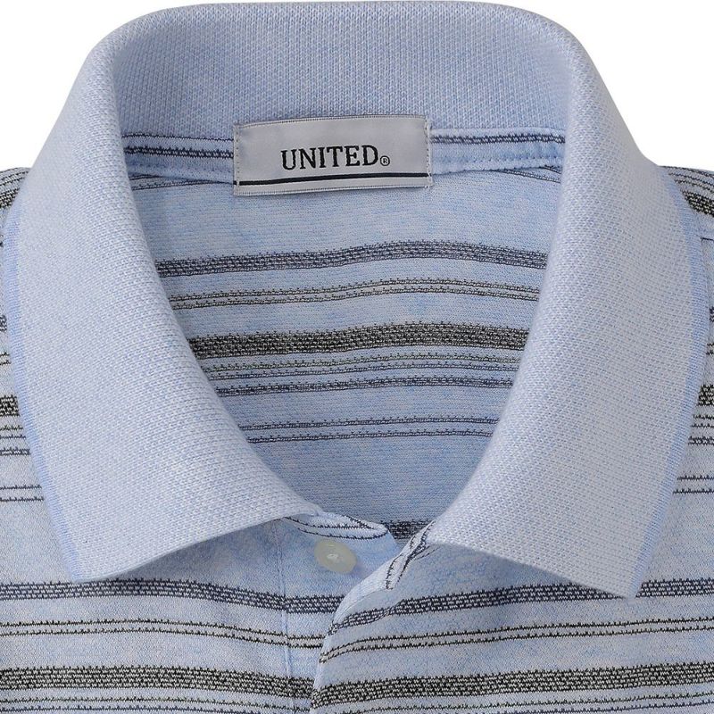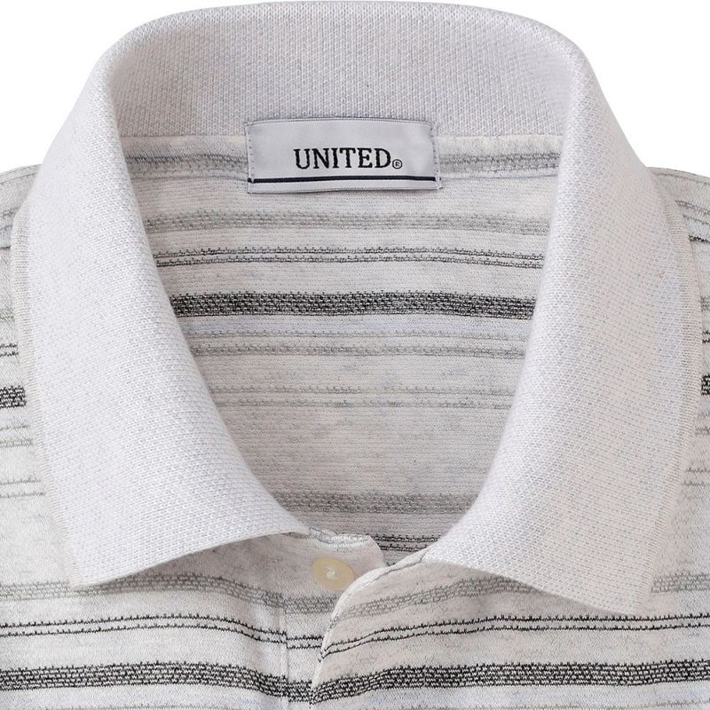 清潔感のあるボーダー柄の半袖ポロシャツ。
