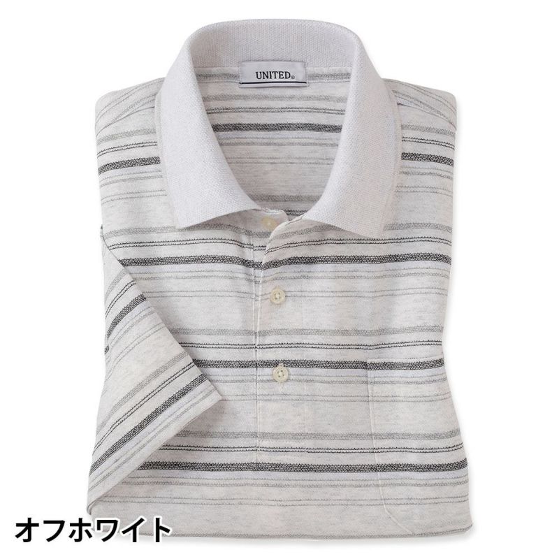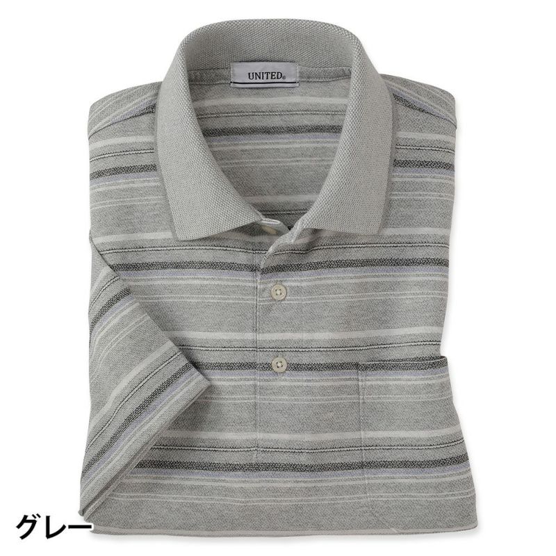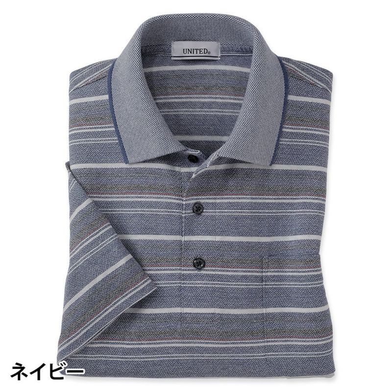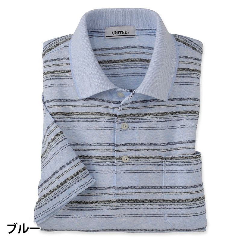 日本製/メンズ/梨地ボーダー半袖ポロシャツ