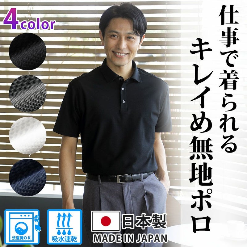 3. メンズ/日本製/キレイめDRY無地半袖ポロシャツ