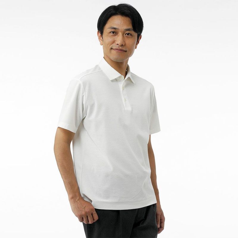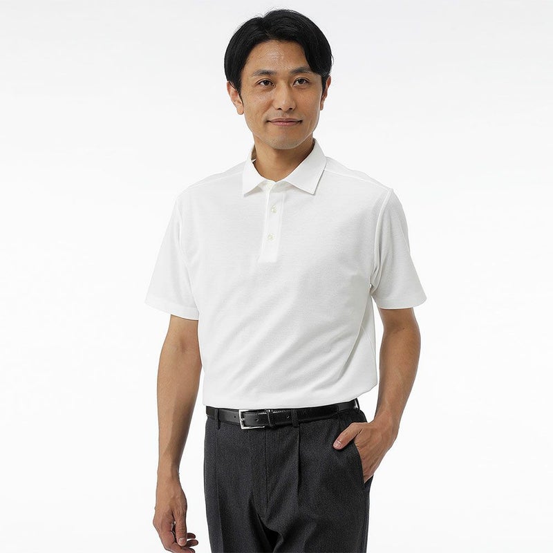 清潔感と着心地を極めた仕事対応のきれいめ半袖ポロシャツ。暑い時期に嬉しい吸水速乾の機能付きです。