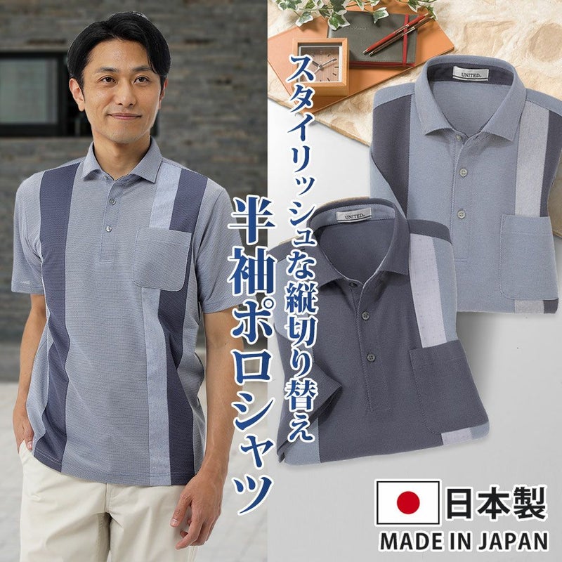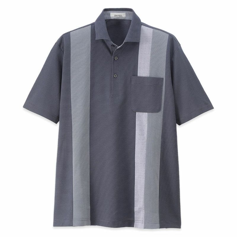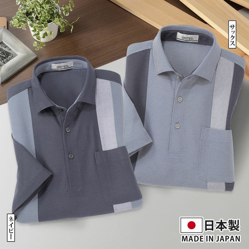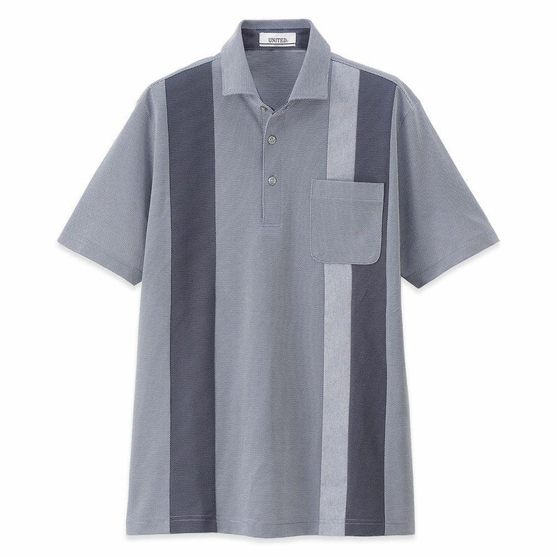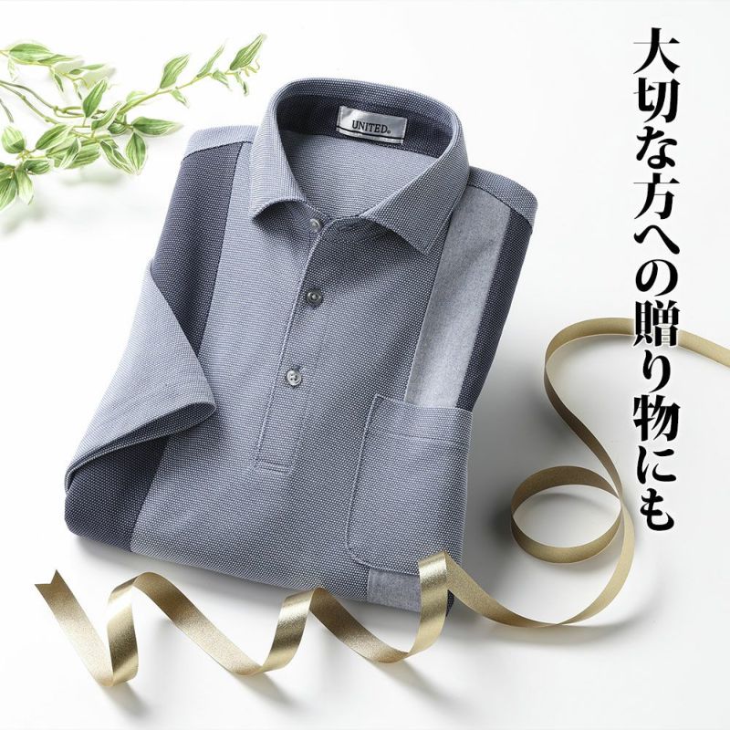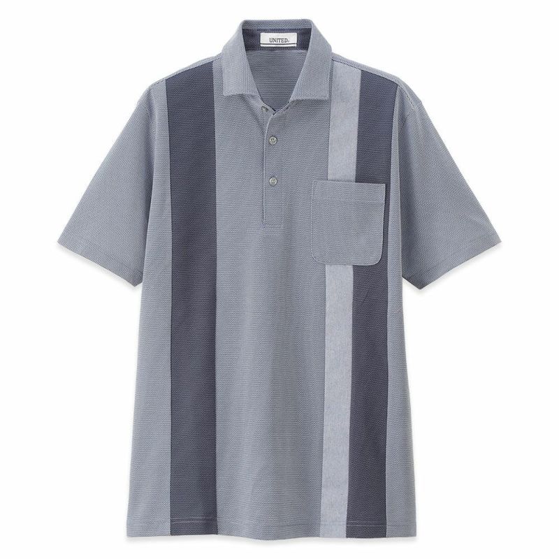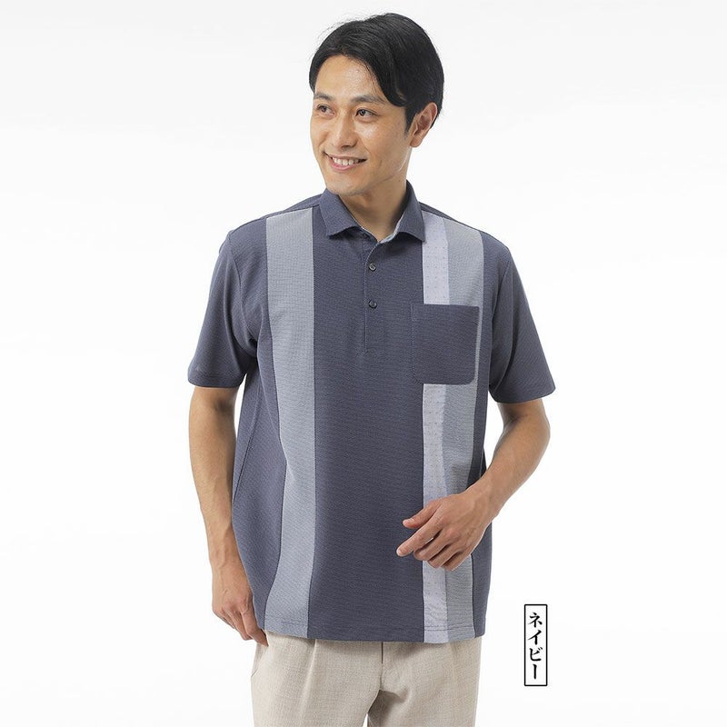 肌当たりの良い縦切替鹿の子の半袖ポロシャツ。