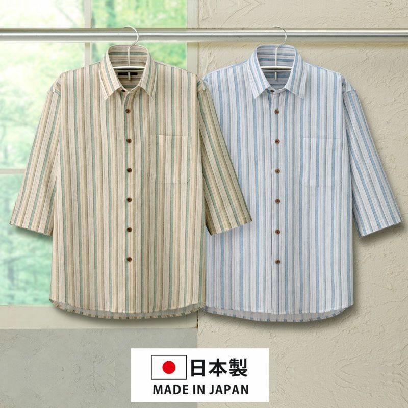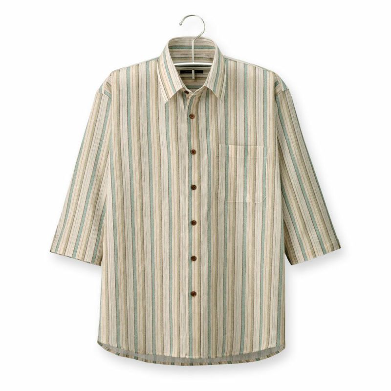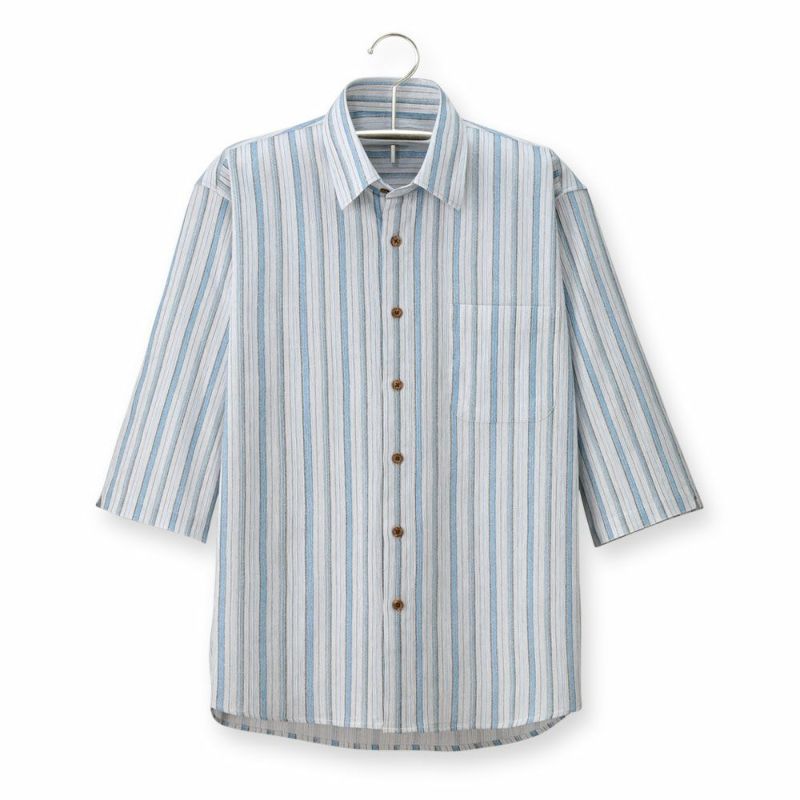 日常着からご旅行などのお出かけなど様々なシーンに着回せる高島ちぢみの七分袖サマーシャツ。
