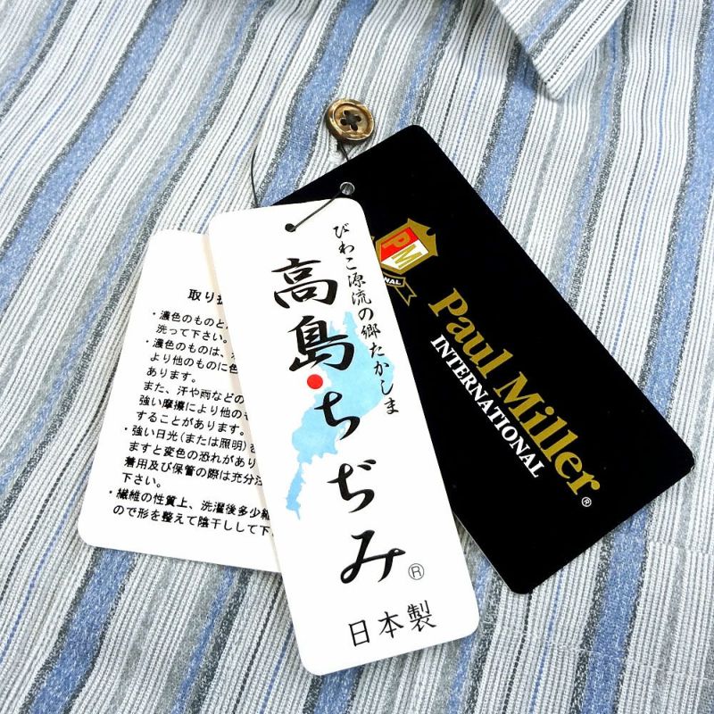 滋賀県高島市で200年以上の歴史を持つ日本の伝統素材「高島ちぢみ」を使用。 表面にシボ状のしわを作った独特の生地で、吸湿性に優れ、爽やかな肌触りであることから、高温多湿な日本の風土に適した素材です。 また、風通しが良く乾きやすいのも特長です。 凹凸があり肌に触れる面積が少ないので、汗をかいてもべたつかず、サラッとした快適な着心地です。