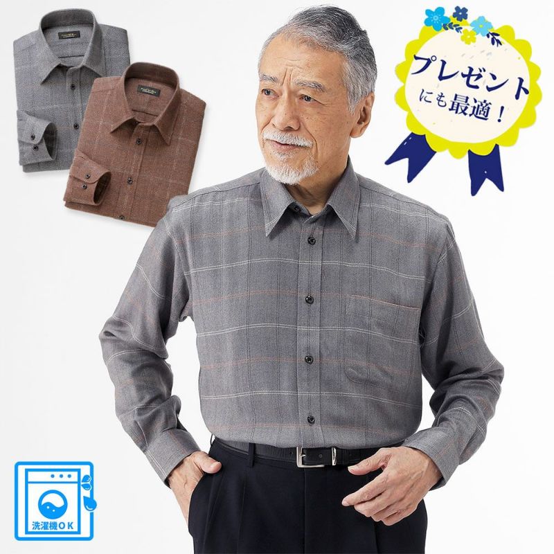 寒い季節にぴったりなウール混素材の長袖シャツ。