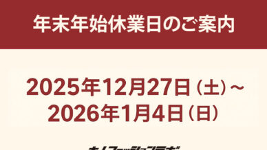 年末年始休業日のご案内