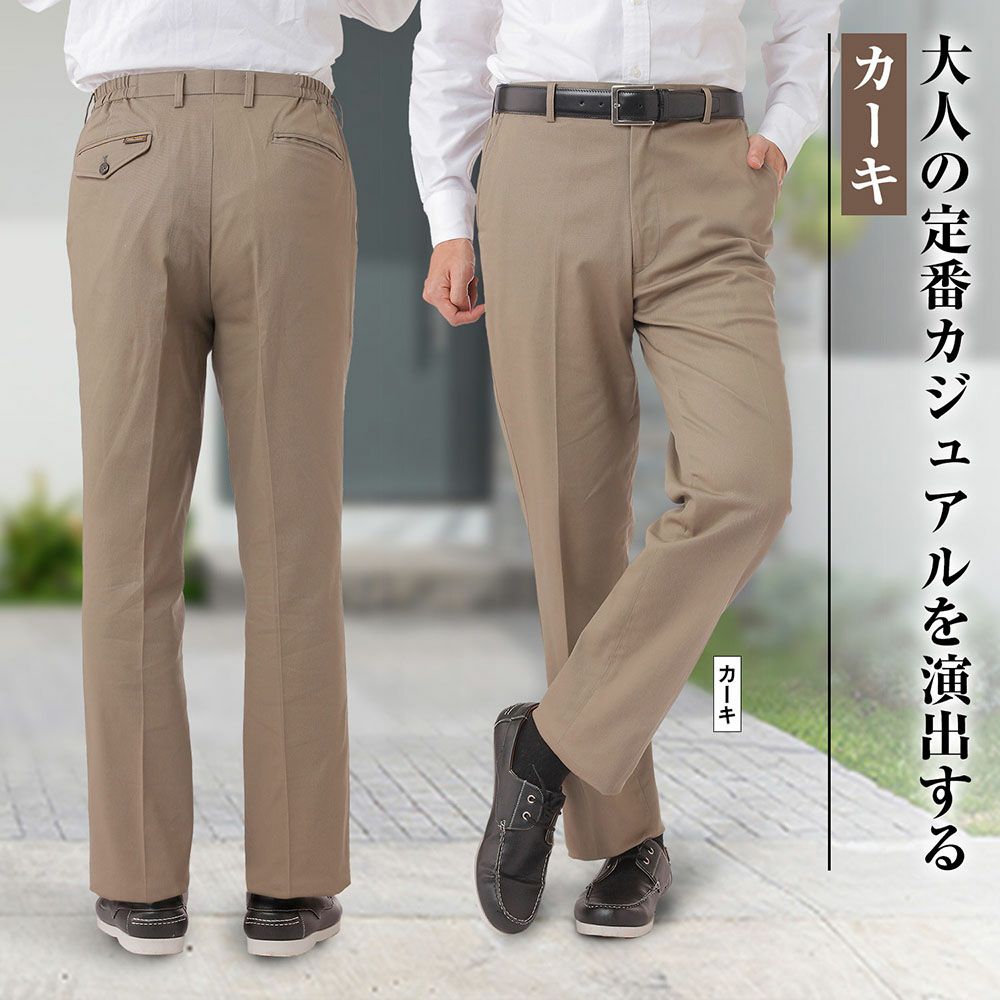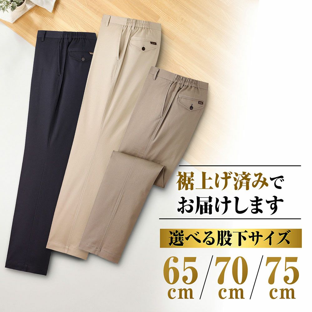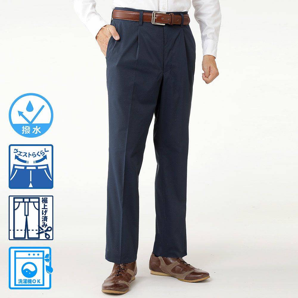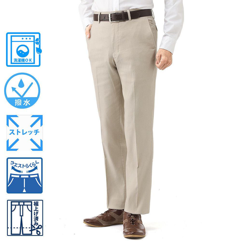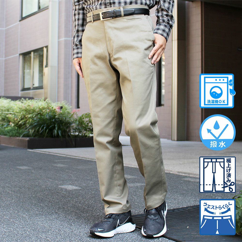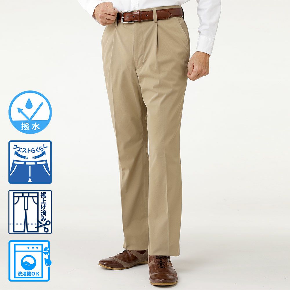 メンズ/ノータック/裾上げ済み/脇ゴム撥水パンツ
