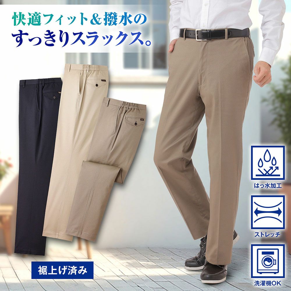 メンズ/裾上げ済み/撥水脇ゴムスラックス